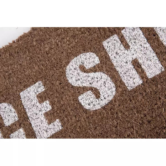 Dørmåtte - brun og hvid - "Nice Shoes!"