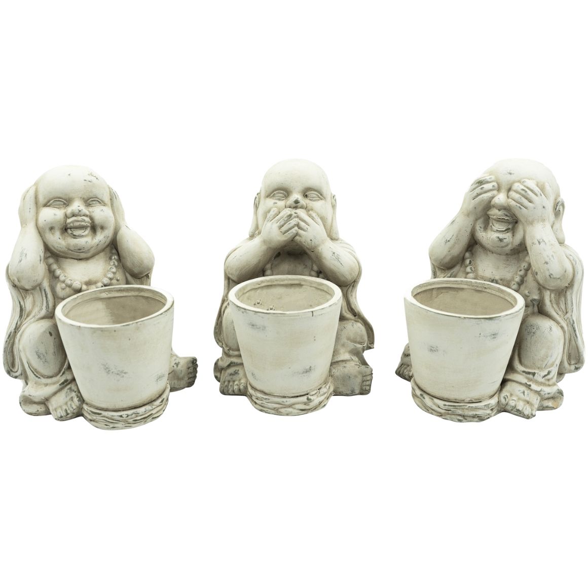 Dekorativ Buddha statue af terracotta. Statuen fås i de tre forskellige varianter der ses på billedet. Prisen er for et enkelt eksemplar. Statuen måler cirka 20 cm i højden.