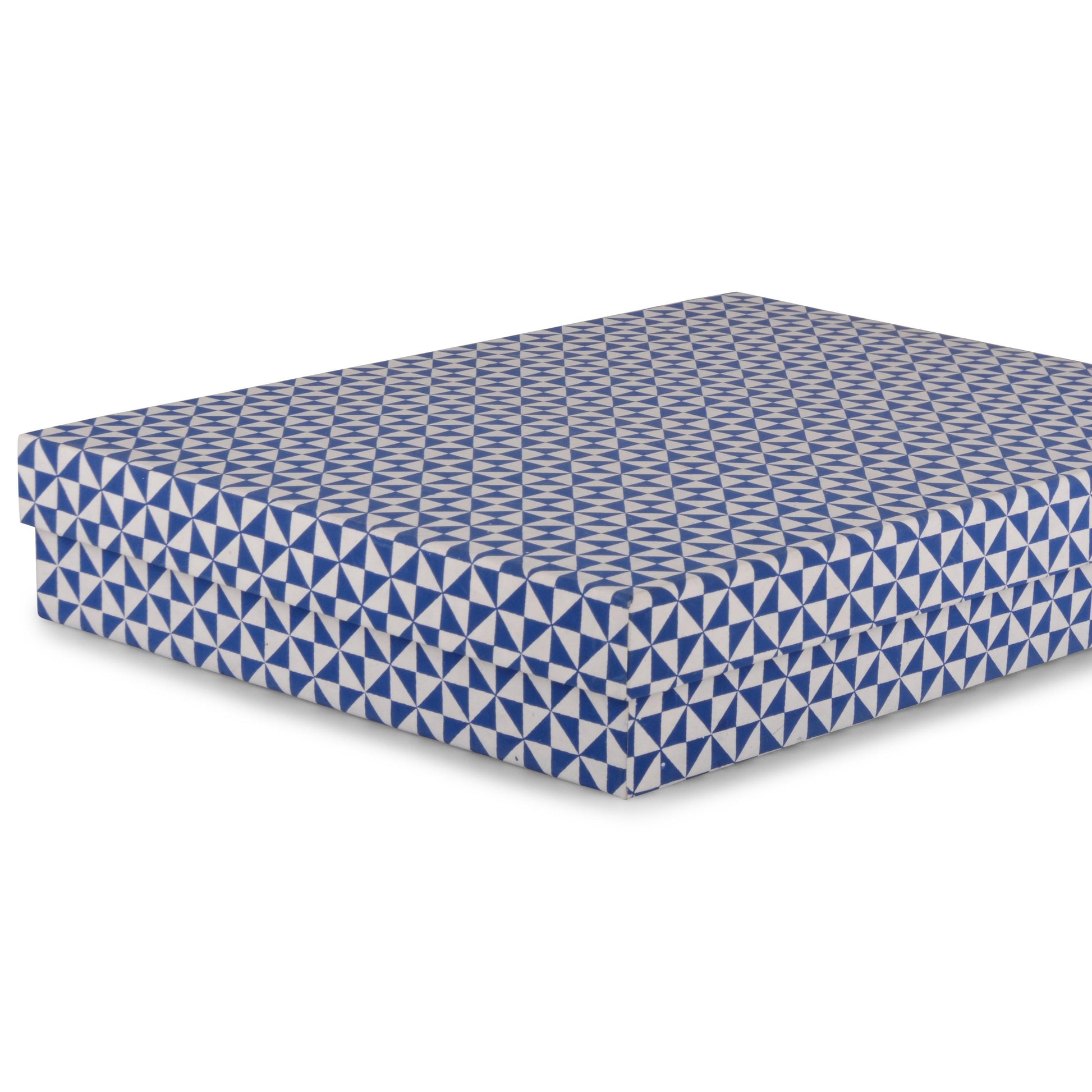 Arkivkasse - blå og hvide tern - 36 x 26 x 6 cm