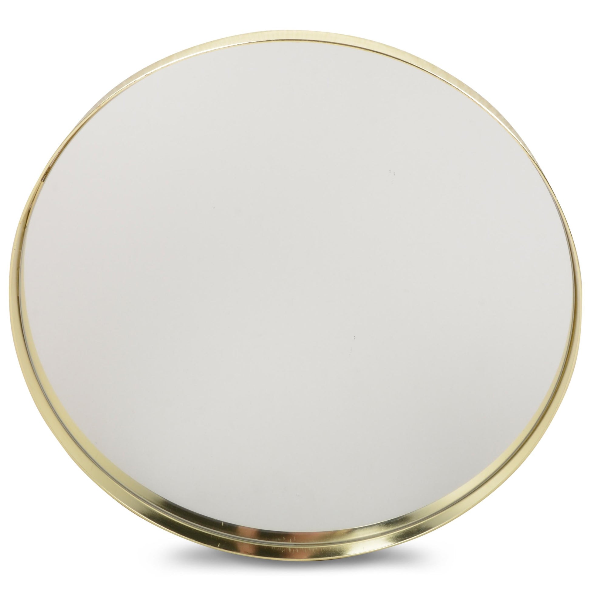 Elegant spejl fra Form Living. Spejlet er indrammet af en guldkant mens bagsiden er sort. Udover spejlglas består spejlet af metal. Spejlet kan enten hænges op på væggen eller stå på et bord.