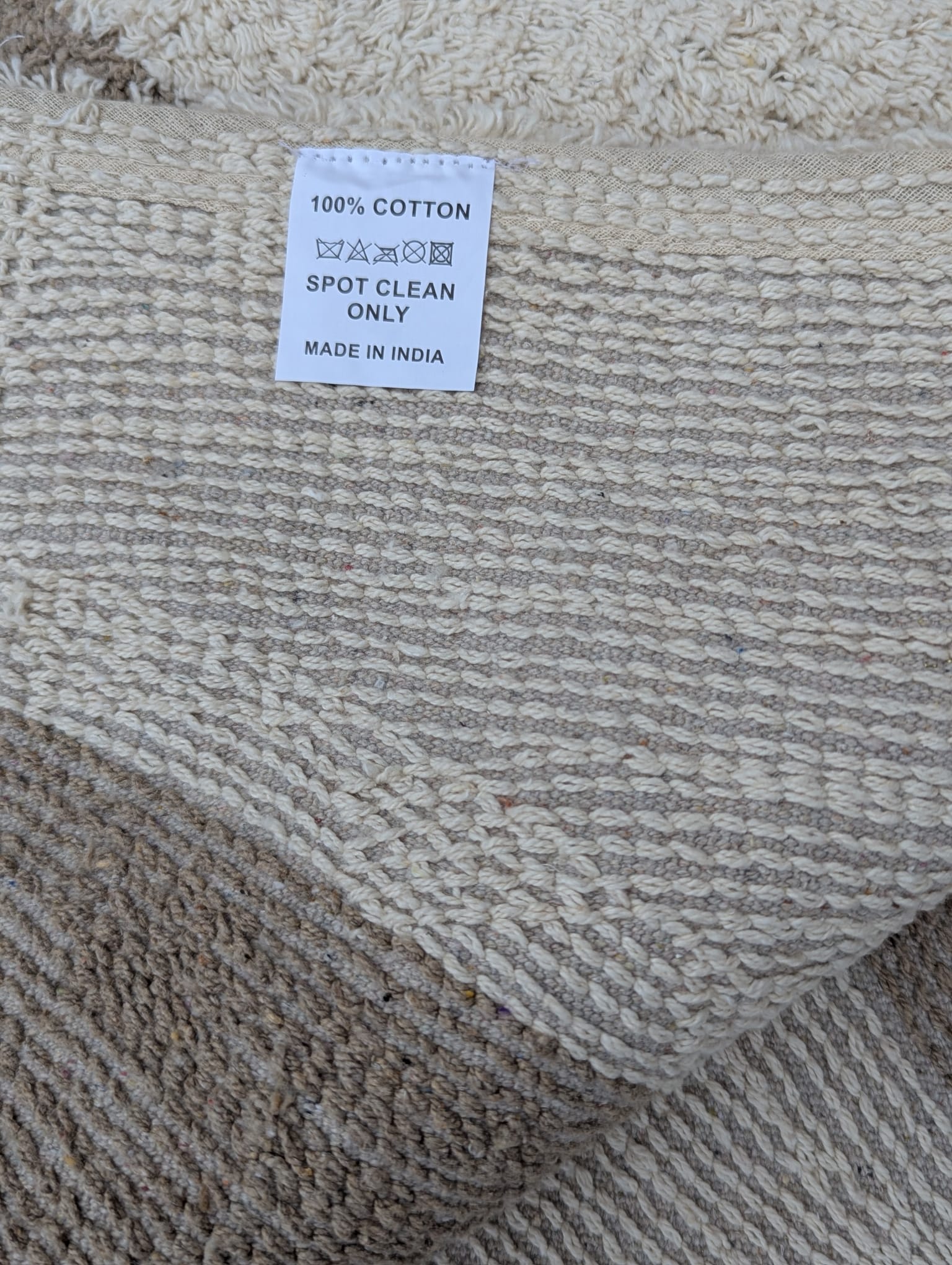 HÅNDLAVET VAMSET GULVTÆPPE MED MØNSTER. REN BOMULD. MÅLER 120 X 180 CM