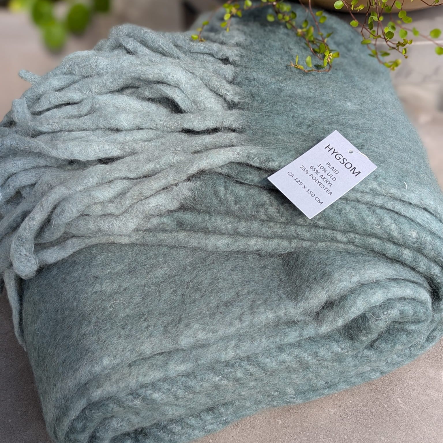 Lækker, tyk og vamset tæppe fra mærket Hygsom. Perfekt til pynt eller til at holde vinterkulden fra døren.