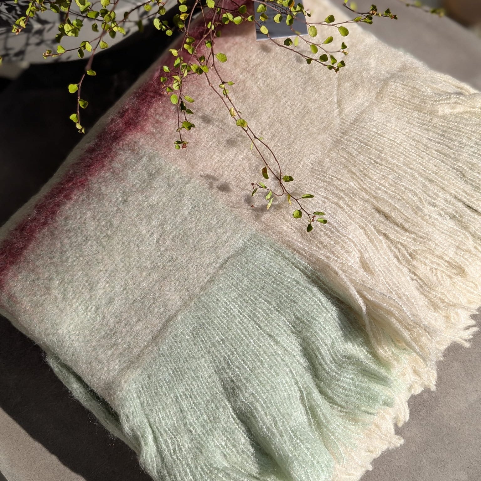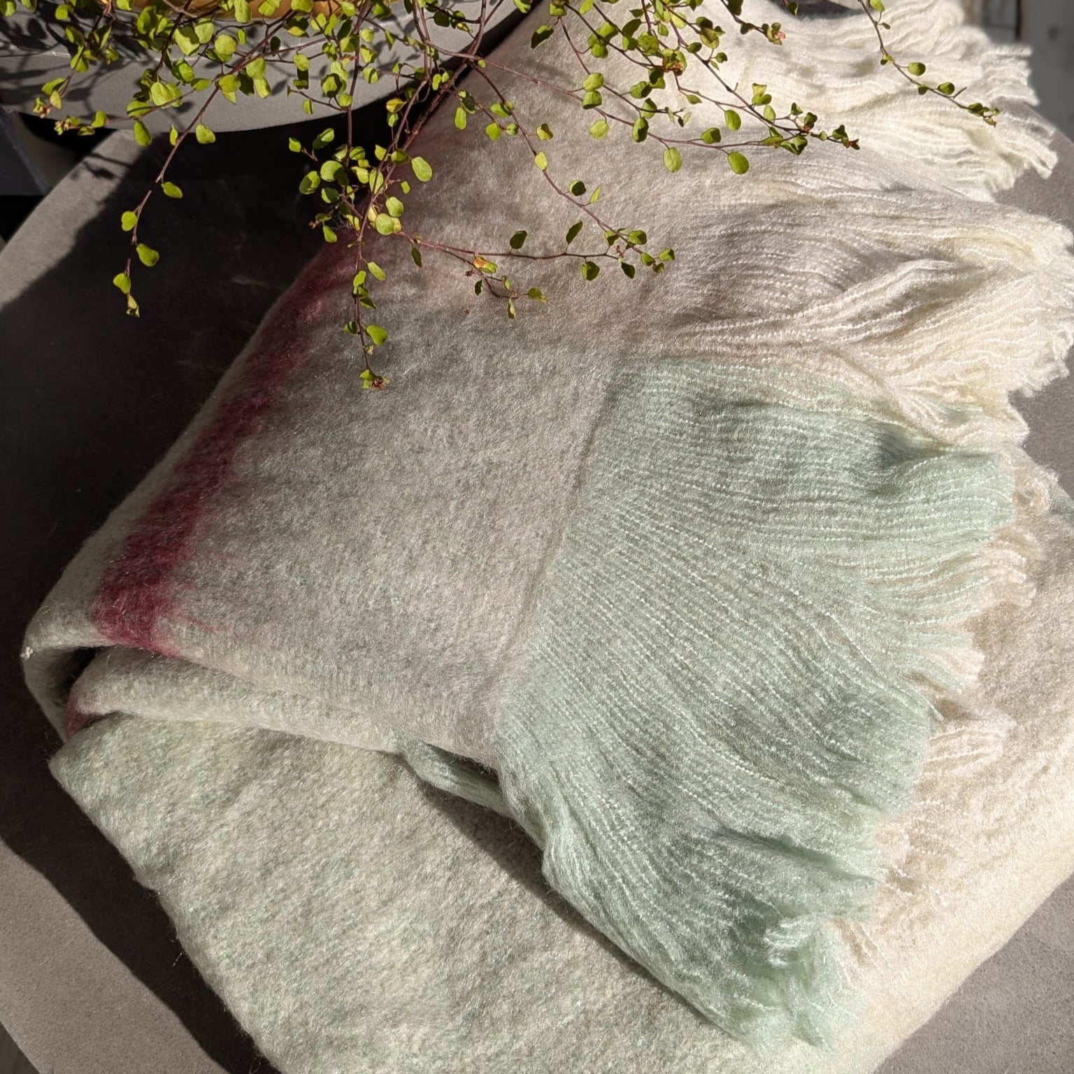 Hygsom - plaid - uld mix - rød/hvid/grøn