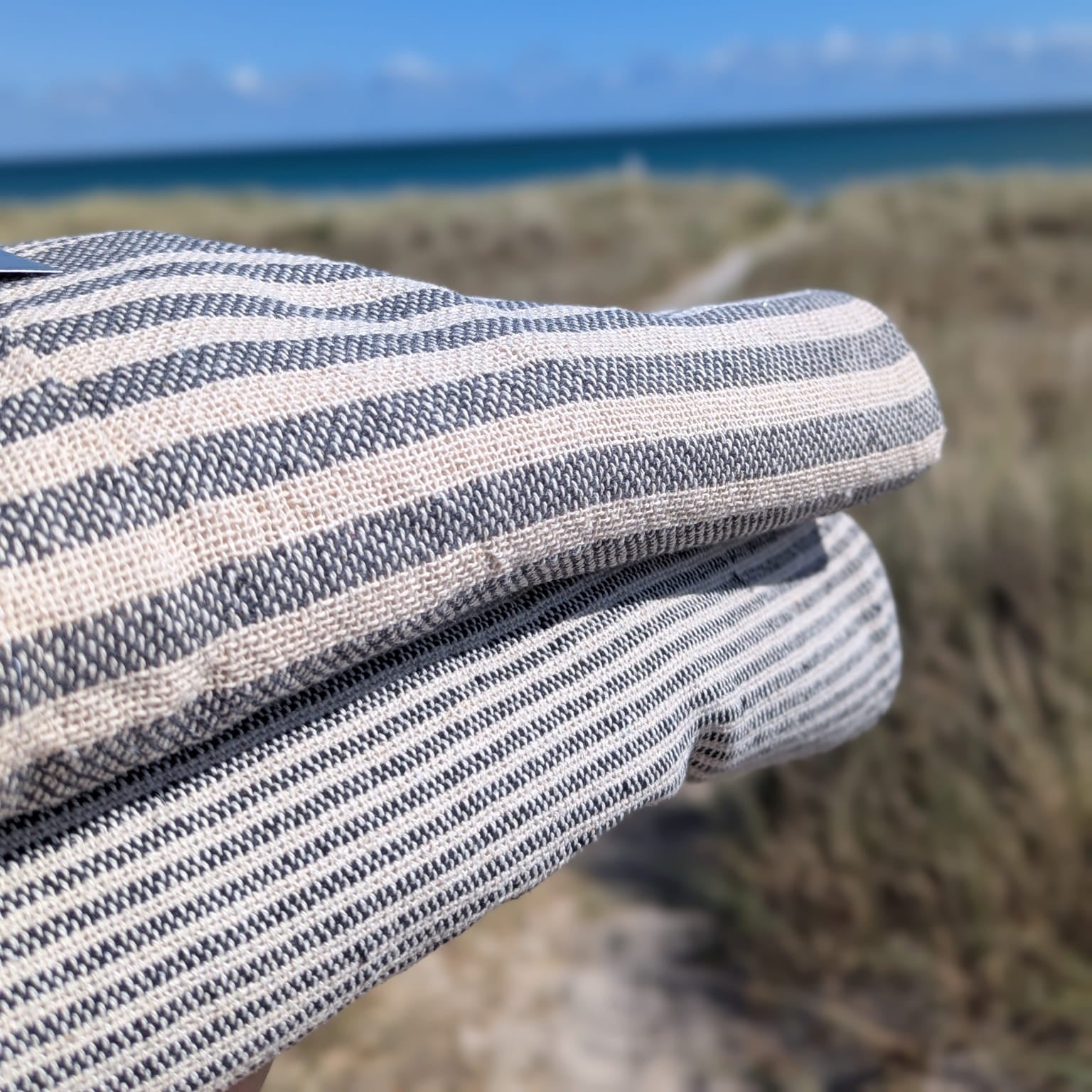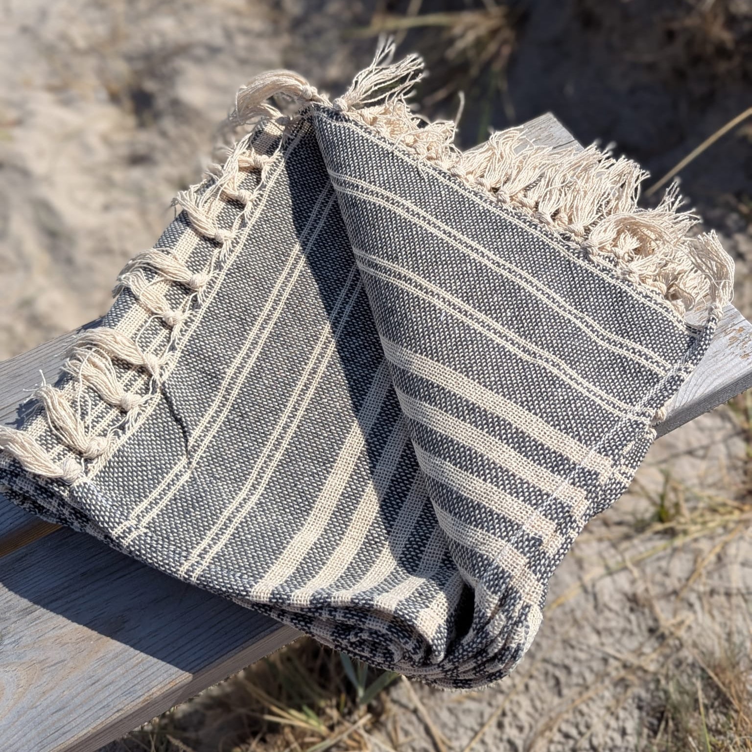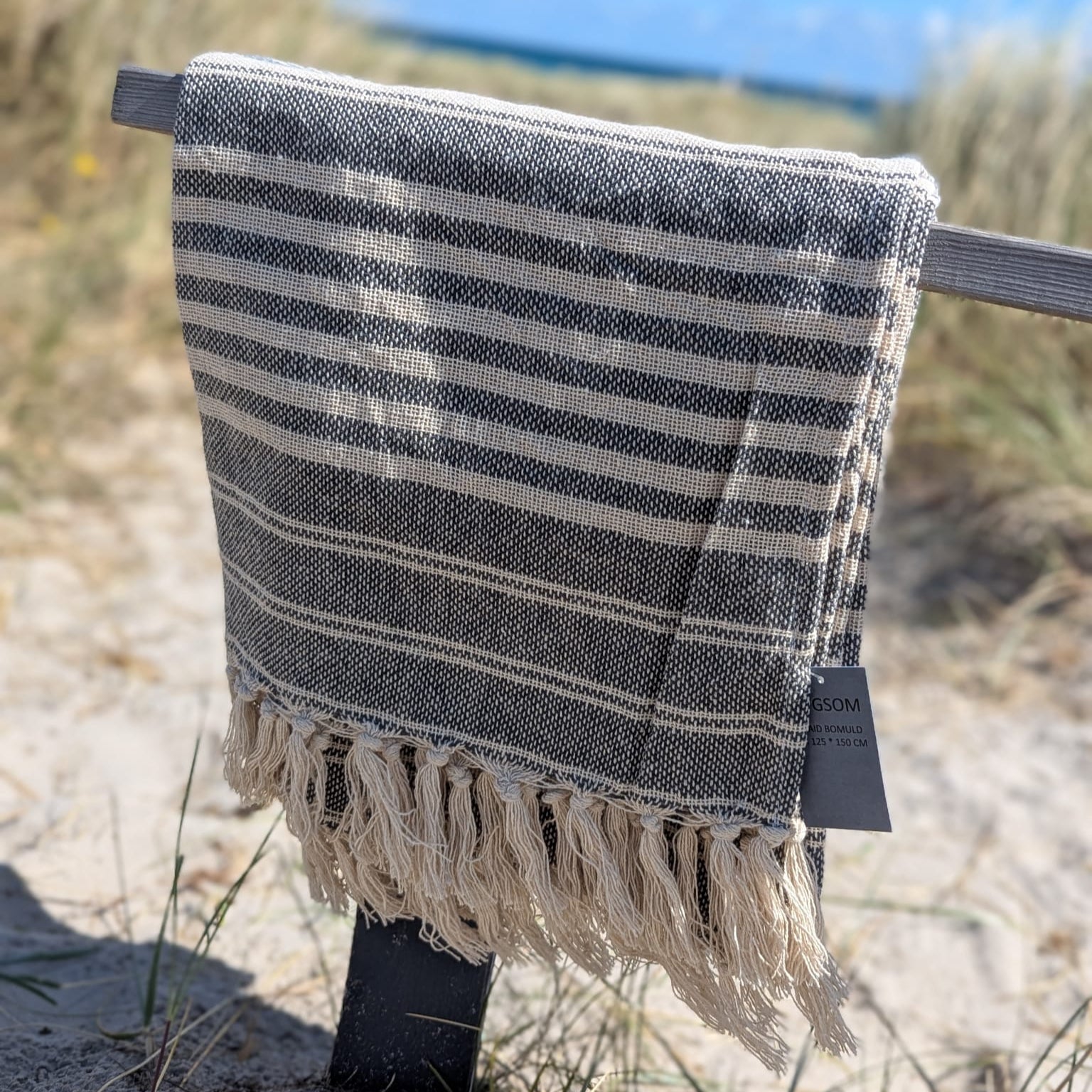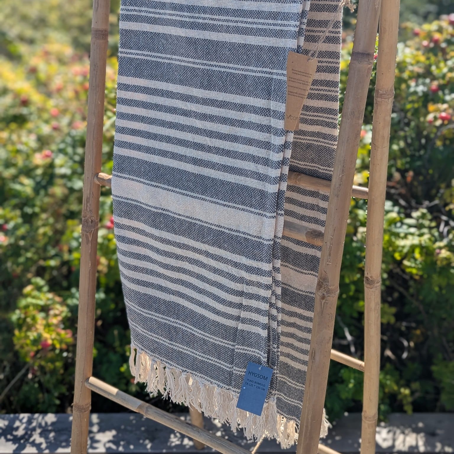 Smart og lækker bomuldsplaid fra mærket Hygsom. Plaiden er lavet af genbrugsbomuld, hvilket giver den et unikt look, og gør den til et bæredygtigt valg. Perfekt til pynt eller til at holde vinterkulden fra døren. Plaiden måler cirka 125 cm x 150 cm. (130 x 170 cm .inkl. frynser)