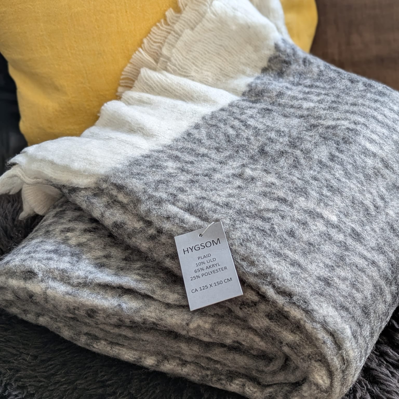 Lækker, tyk og vamset tæppe fra mærket Hygsom. Perfekt til pynt eller til at holde kulden fra døren.