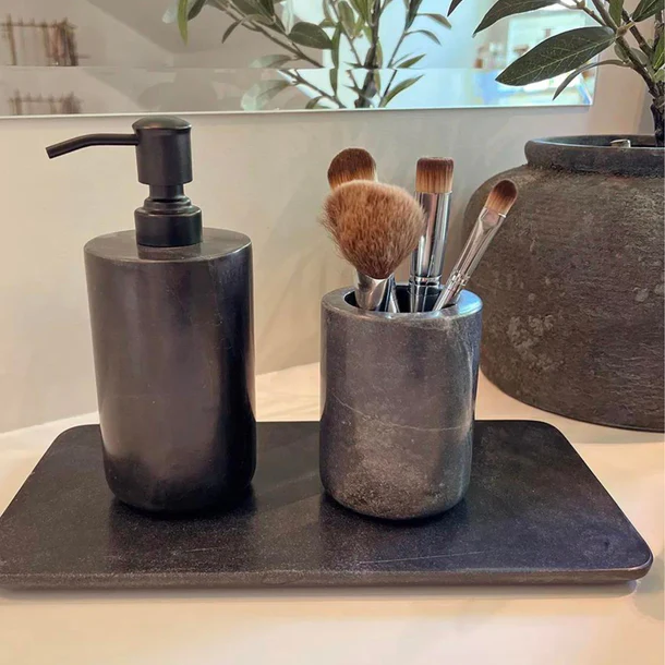 Fin sort marmorbakke fra La Vida. Marmorbakken kan nemt tilpasses forskellige sammenhænge i hjemmet og kan for eksempel stilles i køkkenet, på badeværelset eller i arbejdsværelset. Marmorbakkens farve er sort, men kan variere en lille smule fra eksemplar til eksemplar, da bakken er lavet af naturmateriale.