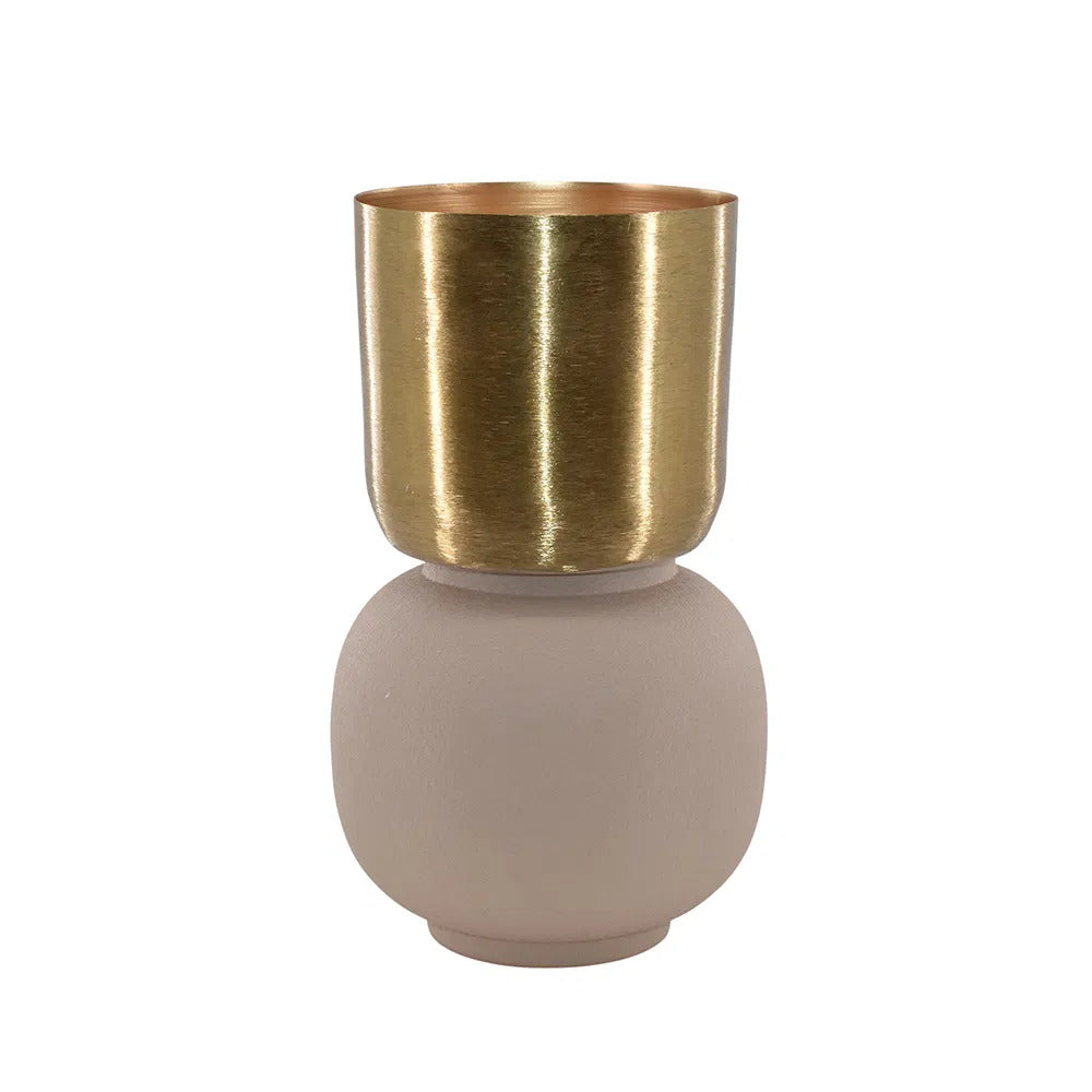 Elegant metalpotte på sandfarvet fod fra La Vida. Velegnet til at bruge som potteskjuler for planter eller blomster enten indendørs eller udendørs. Metalpottens størrelse gør den særligt velegnet til større planter.
