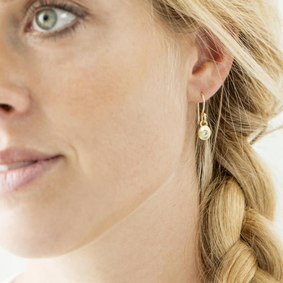Øreringe m/1 lille sten messing - belagt med 18 karat guld. Lotus