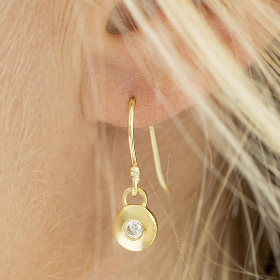 Øreringe m/1 lille sten messing belagt med 18 karat guld. Lotus